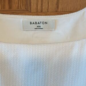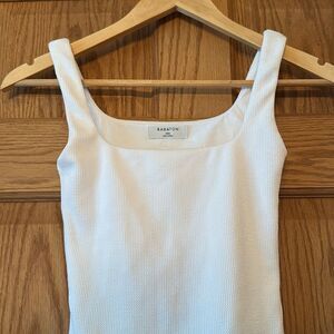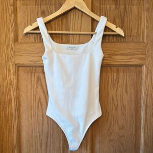 BABATON Square Neck Textured Lined Bodysuit Size: XXS Color: White Thong style EUC