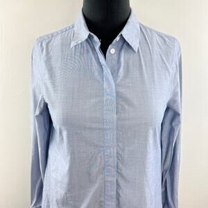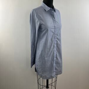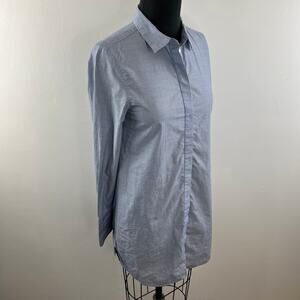 BABATON Blue Top Cotton Collared Long Sleeve Button Up Tunic Regular XS