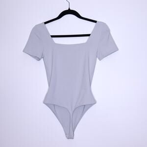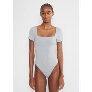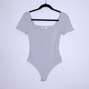 BABATON Aritzia Contour Squareneck Short Sleeve Bodysuit Gray Thong Cut Women's S