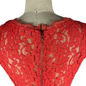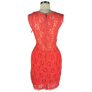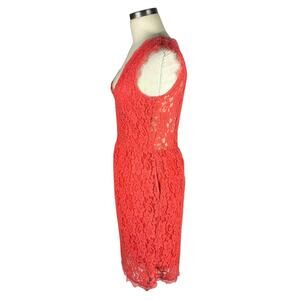 BABATON Coral Pink Orange Lace Mini Dress Size 8 Preppy Chic Glam V-Neck