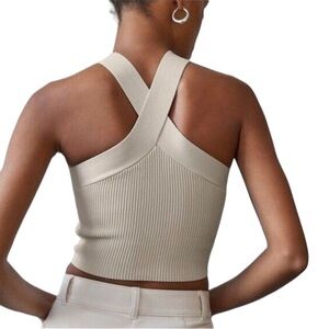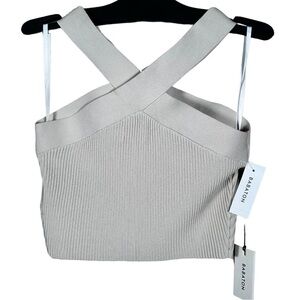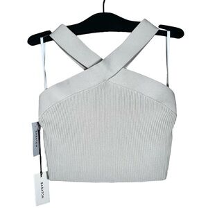 NWT women’s size S BABATON x ARITZIA Sculpt Knit Criss-Cross Crop in Matte Pearl
