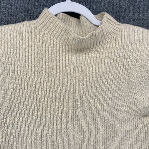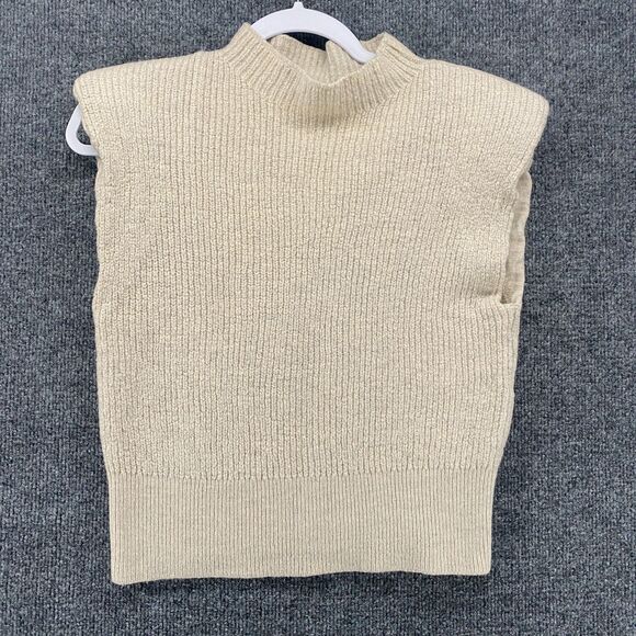 BABATON Sweater Womens M Merino Wool Mock Neck Crop Sleeveless Ecru Quiet Luxury