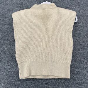 BABATON Sweater Beige Merino Wool Mock Neck Cropped Sleeveless Ladies Preppy