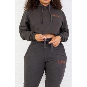 BABES Set Charcoal Grey Comfy Sweatsuit Lounge Jogger + Hoodie Size M + L