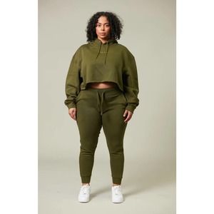 BABES Set Olive Green Comfy Sweatsuit Lounge Jogger + Hoodie Size M