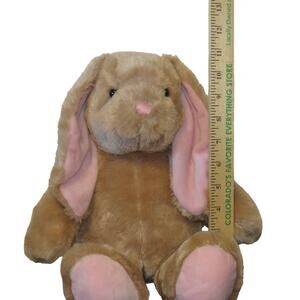 BABW Plush Light Brown Bunny, Floppy Pink Ears & Paws Stuffed Animal Soft Toy