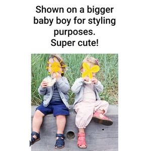 BABY BOY POPPY ROSE DENMARK EURO-BOUTIQUE MARLON SEA BLUE LINEN SHORTS $95 3M