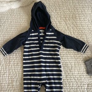 1 BABY B'GOSH BLUE/WHITE STRIPED ONE PIECE OUTFIT WITH HOOD