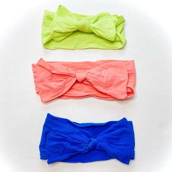 BABY Bling Bows Stretchy Nylon Bow Knot 3 Bows in Coral Royal Blue and Green