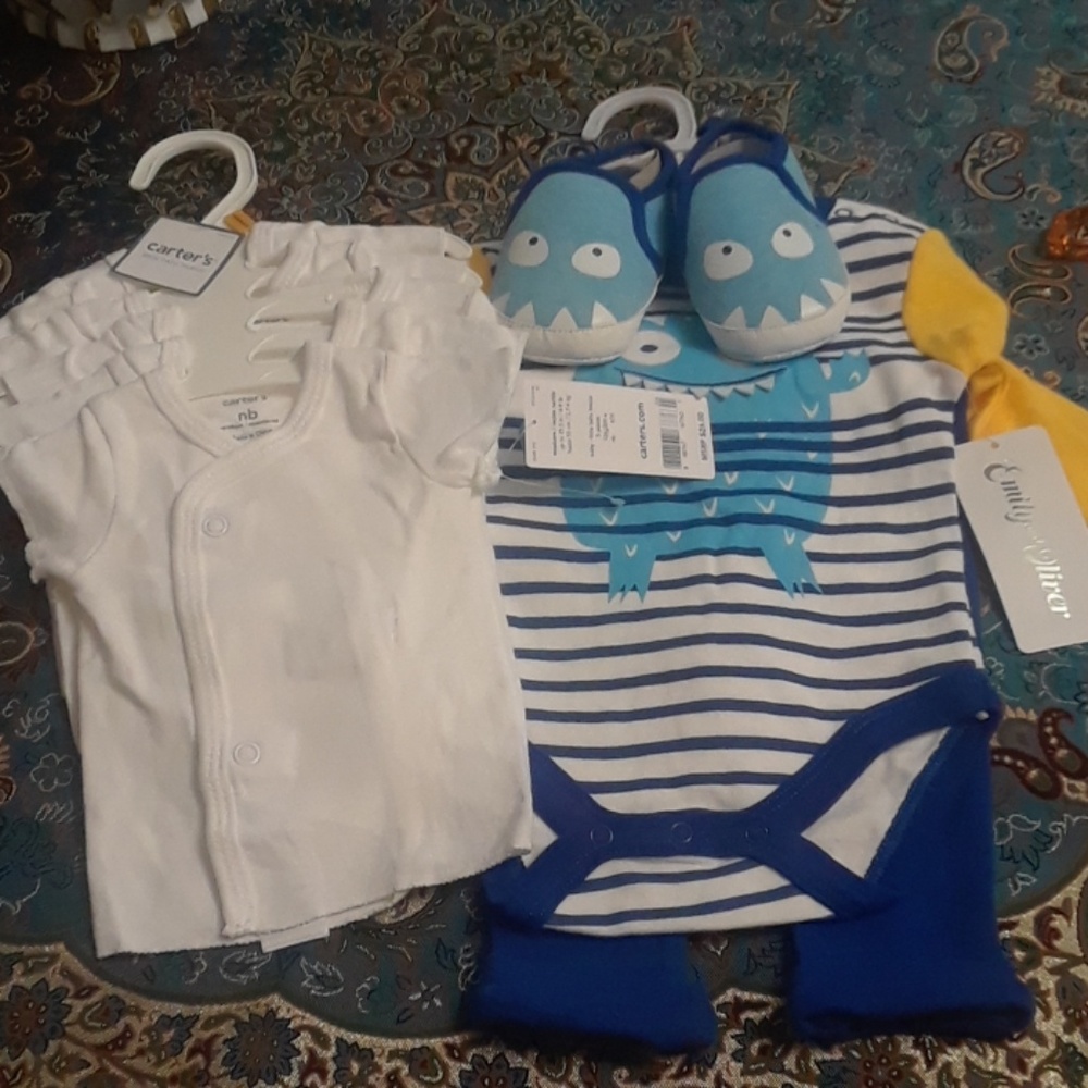 Boy's pant, onesie, and monster shoes size 0 to 3 months Emily and Oliver brand