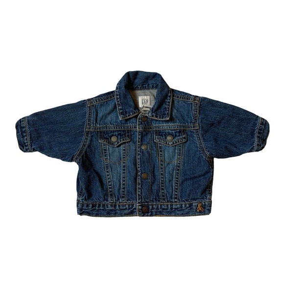 BABY GAP Infant up to 3 MOS Denim Jean Jacket Short Sleeve Blue Bear