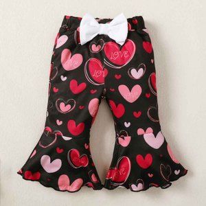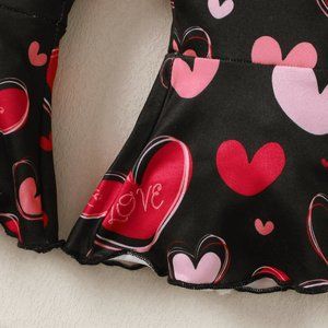 BABY GIRL GRAPHIC RUFFLED BODYSUIT AND HEART PRINT FLARE PANTS SET