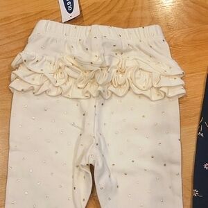 1 NWT OLD NAVY CREAM.RUFFLE BUTT PANTS WITH GOLD FOIL POLKADOTS.