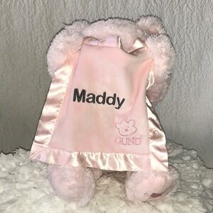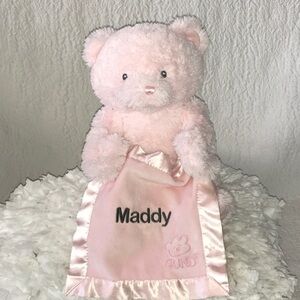 - Added embroidered "Maddy" on blanket. Could be for your baby named Maddy or name your bear Maddy.