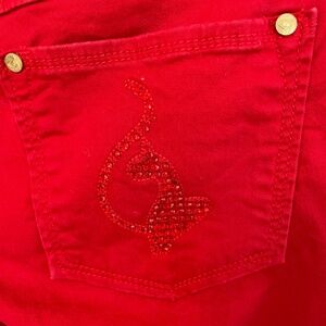 Logo in red rhinestones on back pocket