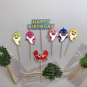 BABY SHARK THEME HAPPY BIRTHDAY CAKE TOPPERS SET 16