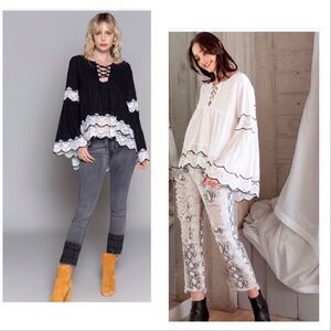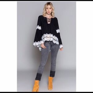 Babydoll Top W/ Criss Cross Closure , Bell Sleeves