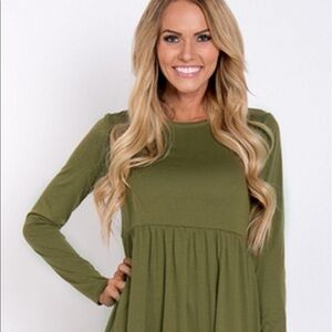 LONG SLEEVE BABYDOLL TOP BY A DIP OF DARLING, NWOT, SIZE XXXL, OLIVE GREEN, PERFECT CONDITION, NEVER BEEN WORN