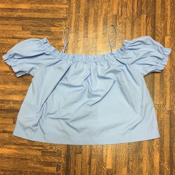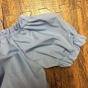 Babyblue top. Can be worn off the shoulder. Puffy sleeves. Comfortable and breezy. Runs smaller. Brand new and never worn.