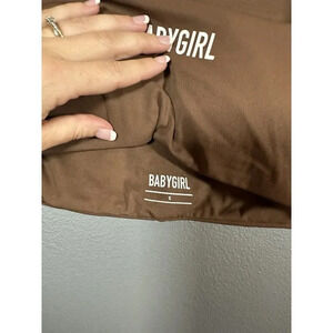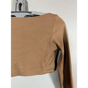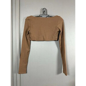 BABYGIRL Apparel Brown Sports Gym Athletic Long Sleeve Square Neck Crop Top S