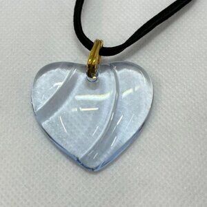 BACCARAT CLEAR CRYSTAL HEART NECKLACE Choker PENDANT Blue With Box