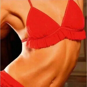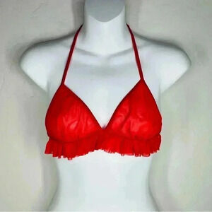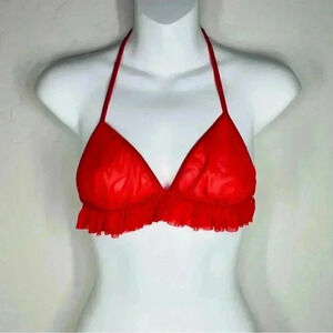 baci lingerie red triangle bra, sheer tulle ruffle bra, one size women's lingerie, adjustable strap bralette, romantic red lingerie, new with tags