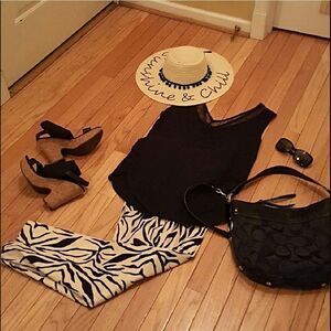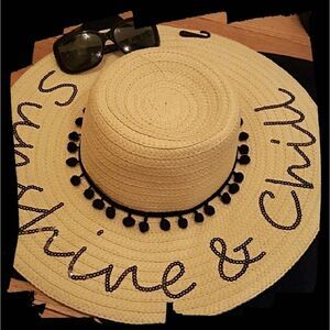 This hat is just Fabulous! Brand new & dying to hit the beach w/ you. Cursive is done beautifully in sequins for a little extra sassiness! Tiny pom poms add a touch of whimsy. Easily worn with just about any outfit you can conjure: from a bathing suit to a maxi skirt. Grab it today! NWT.