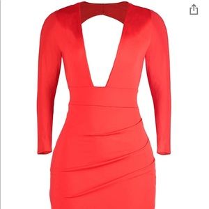 NWT. Deep v neck long sleeve dress, love this piece, very sexy yet elegant and simple. knee length. Personally did not fit me on the chest area. Perfect for any one with perky boobs or whom got breast aug or any one that feels comfortable with out a bra. Material is mostly polyester. I love POLYESTER it simply hugs my body. La la love it!!!