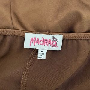 Adorable and sexy satin minidress from Madrag! Size says M but definitely good for an XS-S. Love the brown color and lace detail, as well as the cutouts on the chest and side slit!! Such a flattering silky and sexy dress. New with part of tag still on it! Absolutely love this backless style. Adjustable straps too!🧸🧸