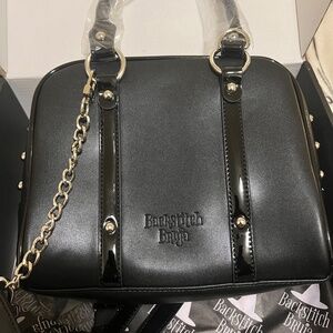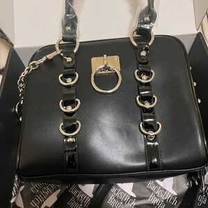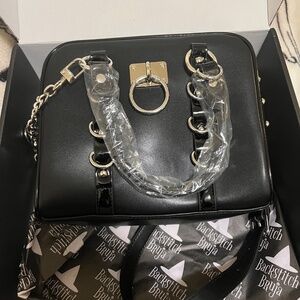 NWT faux leather crossbody with patent leather and o-ring details. the inside is lined with a deep plum red velvet. the strap is detachable, it hooks on the rings of the smaller hand straps but i prefer them to hook up to the sides of the bag. i haven’t been able to make it work to my liking without modifying so i’d rather sell it to someone who will appreciate it as is. no rips, cuts, or scuffs. thanks!