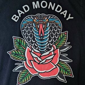 BAD MONDAY T Shirt Graphic 100% Cotton Black Snake Tattoo Style Men Size Medium