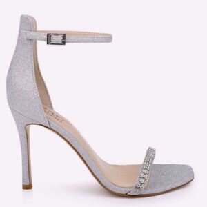 BADGLEY MISCHKA Adriane Glitter Stilettos Silver Dress High Heel Sandals Pumps 9