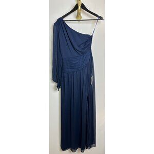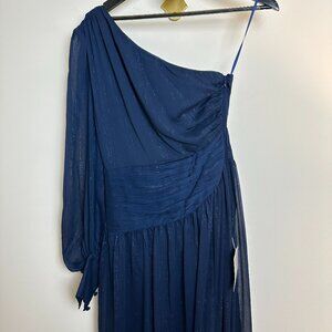 BADGLEY MISCHKA Alice Long Sleeve One Shoulder Gown in Navy Size US 2