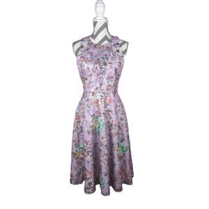 BADGLEY MISCHKA BELLE Nadia Dress Floral Sleeveless A-line Cocktail Lilac Size 6