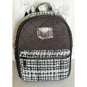 BADGLEY MISCHKA Black Faux Leather & Tweed Diamond Quilted NWT