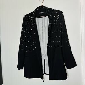 BADGLEY MISCHKA Black Gold Studded Grommets Tailored Edgy Blazer Size 0