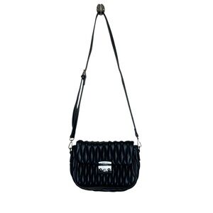 BADGLEY MISCHKA Black Vegan Leather Crossbody Bag Quilted Designer Adjustable