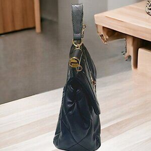 BADGLEY MISCHKA Black Vegan Leather Studded Big Diamond Quilted Top Handle Bag
