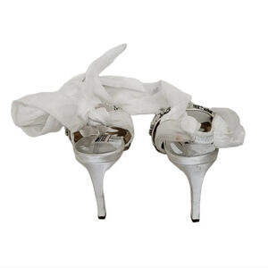 BADGLEY MISCHKA Bobbie Statement Bow Strap Stiletto White