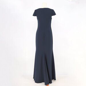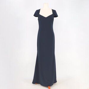 BADGLEY MISCHKA COLLECTION Cap-Sleeve Sweetheart Column Crepe Gown Navy Size 8