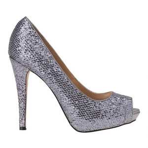BADGLEY MISCHKA | HUMBIE II PEWTER GLITTER Sparkle Sequin Glitter Heels, Size 9