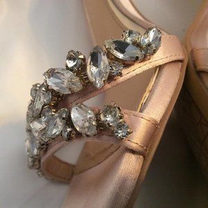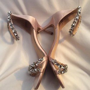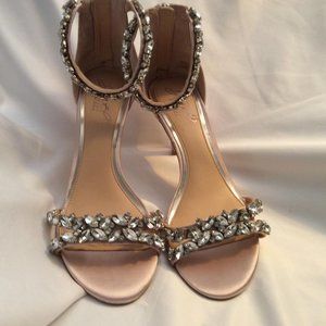 BADGLEY MISCHKA NWOB rhinestone & nude satin 3"heel 'Caroline' sandals Size 7