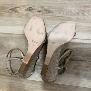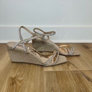 BADGLEY MISCHKA Pale Gold Unity Wedge Sandals Size 8