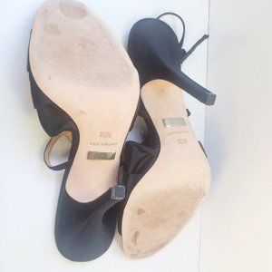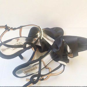 BADGLEY MISCHKA "RUBY" SATIN CRYSTAL JEWELED HEELS