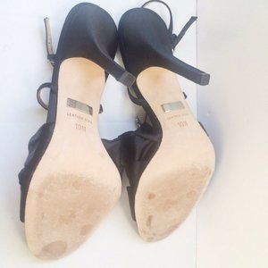 BADGLEY MISCHKA RUBY BLACK SATIN CRYSTAL JEWELED EMBELLISHED WOMENS SANDAL HEELS OPEN TOE