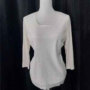 BADGLEY MISCHKA! SILKY CREAM MATTE SEQUINNED FRONT, LONG SLEEVE TEE SHIRT! SZ S