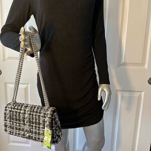 BADGLEY MISCHKA | Shimmer Tweed Adjustable Chain Strap Bag Black & White NWT
