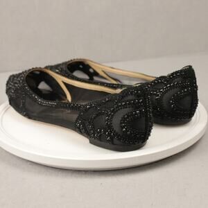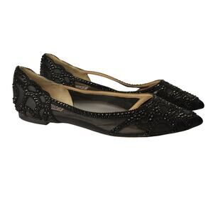 BADGLEY MISCHKA Shoes Women's 10 Flats Rhinestone Pointed Toe Black Mesh is for sale!
