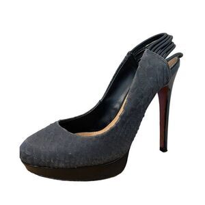 The bottom of these heels show some wear to them. Otherwise they are in good condition.