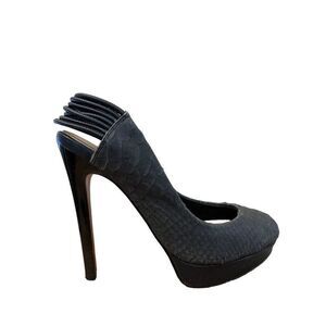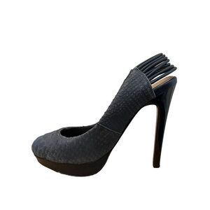 BADGLEY MISCHKA Size 6.5 Mark & James MARCY Black Leather Platform Heels Snake
